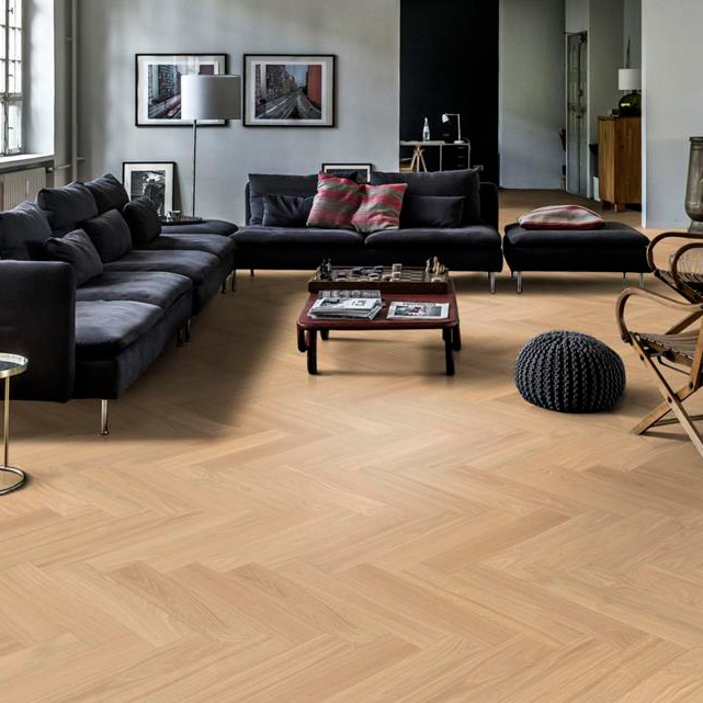 Дуб AB Дымчатое белое масло –2-х слойная инженерная доска из отборного дуба покрытая маслом. Допускаются небольшие вариации цвета и маленькие сучки. Для составления узора “елочка” необходимо равное количество левых и правых досок (L/R в конце артикула; паковываются отдельно).