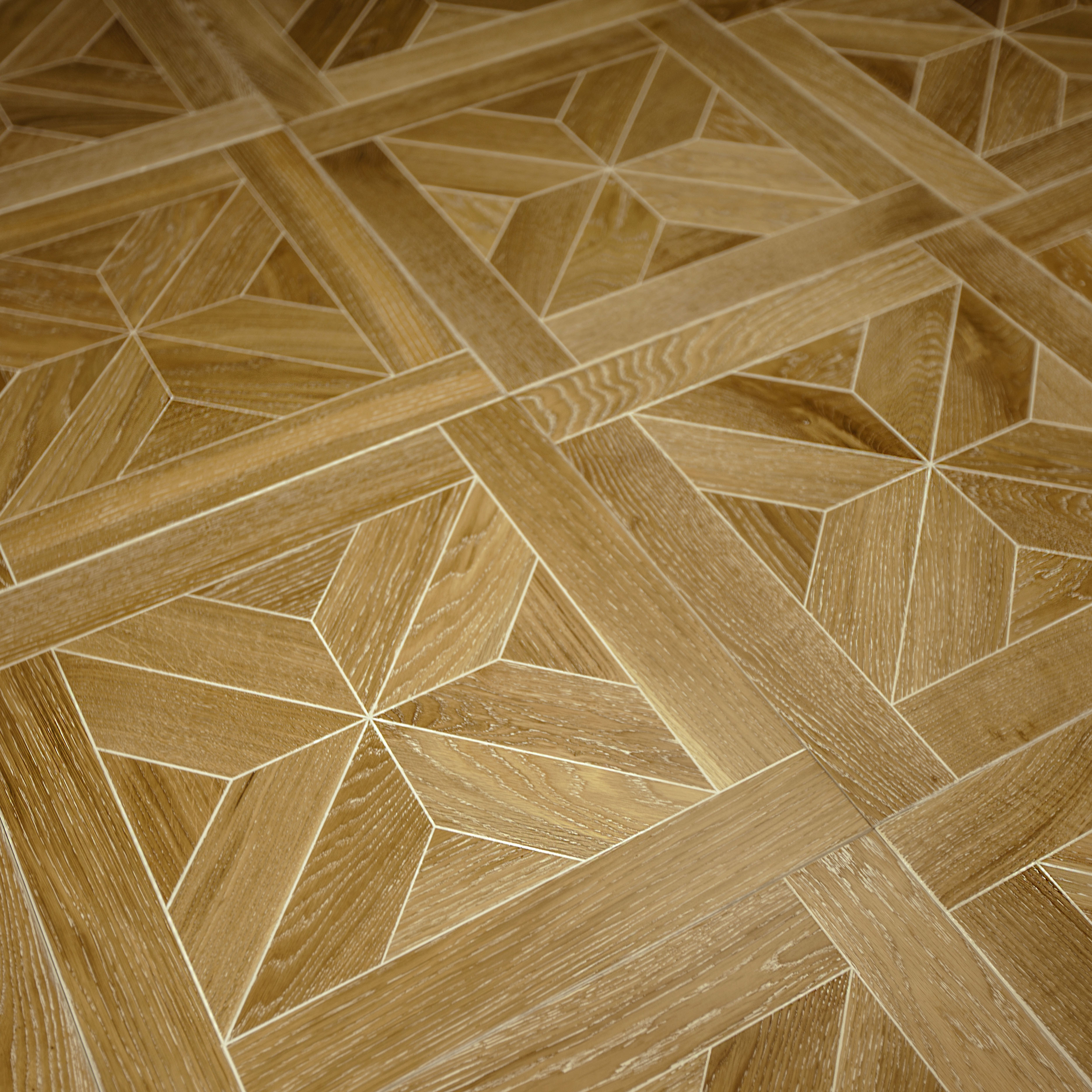 Рисунок инженерного модуля Rome White Brush – интерпретация французского модульного паркета из замка «Шенонсо», который сочетает в себе изысканность и строгость, парадность и скромность. Модуль создает необыкновенно выразительный орнамент, кажущийся объемным и рельефным. Rome White Brush эффектно сочетает в своем декоре природную теплоту натурального дуба и холодный, практически белый оттенок волокон, который они приобрели после специальной обработки. Белые фаски и узор древесного волокна делают рисунок особенно выразительным и объемным.