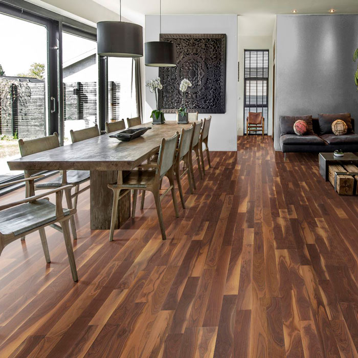 Подыскиваете выразительный рисунок и сочный цвет напольного покрытия? Предлагаем эффектную паркетную доску «Орех Джорджия», верхний слой которой выполнен из натурального американского ореха. Экспрессивная игра темных и светлых оттенков послужит великолепным декором для интерьера, выполненного в современном или этническом стиле. Визуальное восприятие линий и цветовых переходов подчеркнуто легким брашированием и обработкой прозрачным маслом.