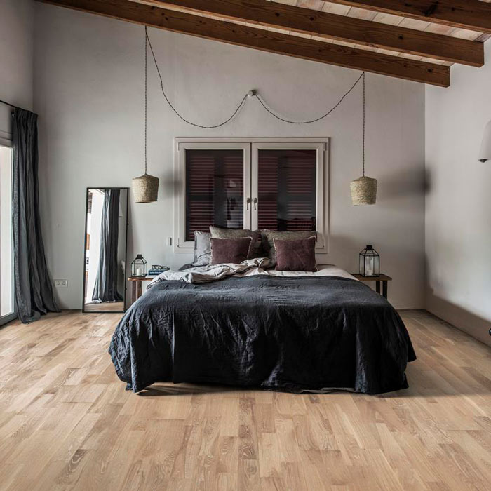Благородный розоватый оттенок паркетной доски «Дуб Перистое Облако» способен привнести в любое помещение атмосферу респектабельной элегантности. Нежные линии древесной текстуры выглядят еще более выразительно после браширования – обработки жесткой волосяной щеткой. Благодаря белому матовому лаку поверхность приобрела глубину и отчетливость, свойственному по-настоящему изящным изделиям. Прямые края без фаски идеально смыкаются между собой, образуя гладкий, безукоризненно ровный пол.
