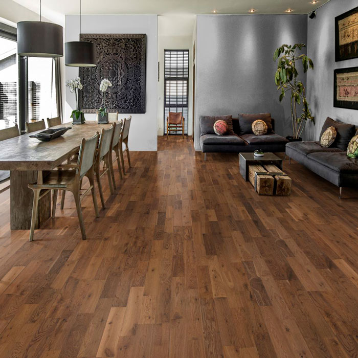 Этот 2-полосный паркет из коллекции Lumen имеет тона насыщенной почвы, которые подчеркиваются копченой отделкой, которая выявляет естественные пятна в древесине. Каждый стол тщательно вычищен щеткой до фуллкоменхета и выявляет более темные нюансы в вневременном деревенском выражении. Ультраматтовый лак создает впечатление только что распиленной древесины, что эффективно устраняет блики и в то же время защищает древесину от ежедневного износа.
