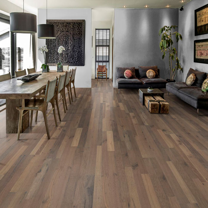Эта двухполосная доска под маслом из коллекции Да Капо представлена в насыщенных цветовых вариациях от туманно серого до оттенков мокрого песка для создания выразительного, словно выцветшего под открытым небом внешнего вида. Сучки и трещины создают впечатление красиво состаренной доски. Совершенная брашировка каждой доски выделяет особенности волокон и подчеркивает натуральную текстуру древесины.