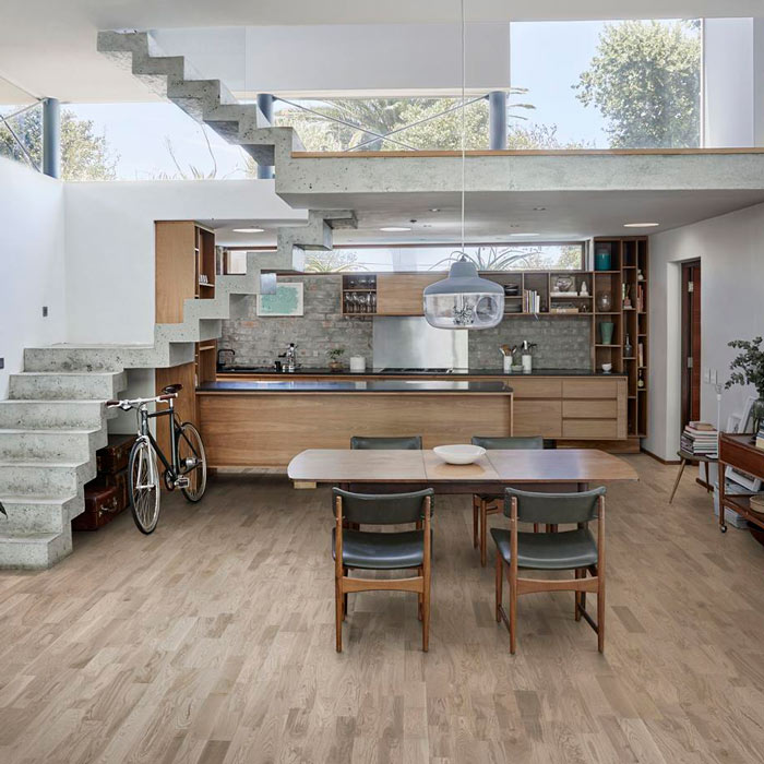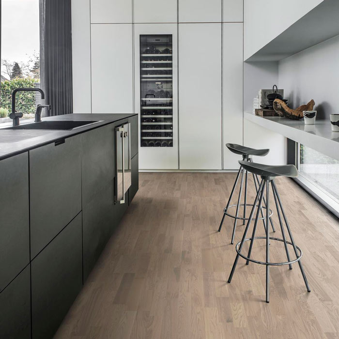 Благородные землистые оттенки натурального мореного дуба – что может быть лучше для отделки дома? Паркетная доска «Туман» становится завершающим штрихом в формировании атмосферы солидности и приверженности традициям. Искусное браширование поверхности позволяет усилить совершенство узоров темных и светлых линий, сплетенных самой природой. Ультраматовый лак подчеркивает натуральность и одновременно служит защитным слоем, повышающим твердость и износостойкость дубовой доски.