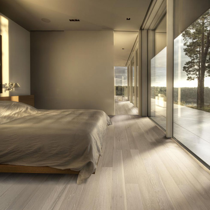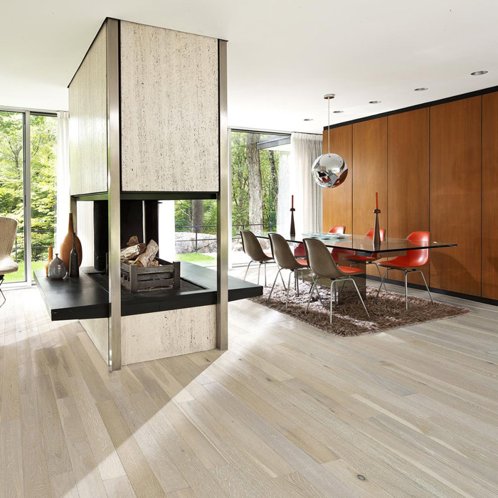Дуб Арктик - 1-полосный рустикальный пол, тонированный белым. Может содержать сучки, заболонь. Вариации цвета значительные.