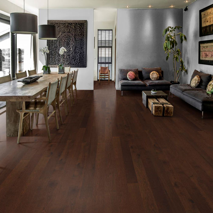 Эта однополосная дубовая доска из коллекции Канвас выделяется своими угольно-коричневыми оттенками. Естественные вариации структуры древесины, соседство пестрых сучков и трещин создает по-настоящему рустикальный эффект. Каждая доска бережно обработана щеткой, чтобы подчеркнуть характер волокон натуральной текстуры древесины. Покрытие из матового лака минимизирует присутствие бликов и препятствует ежедневному износу. 4-х сторонняя фаска придает доске классический вид.Допускаются все естественные вариации цвета древесины, в том числе заболонь. Для декора характерны зашпатлеванные сучки и трещины без ограничения.