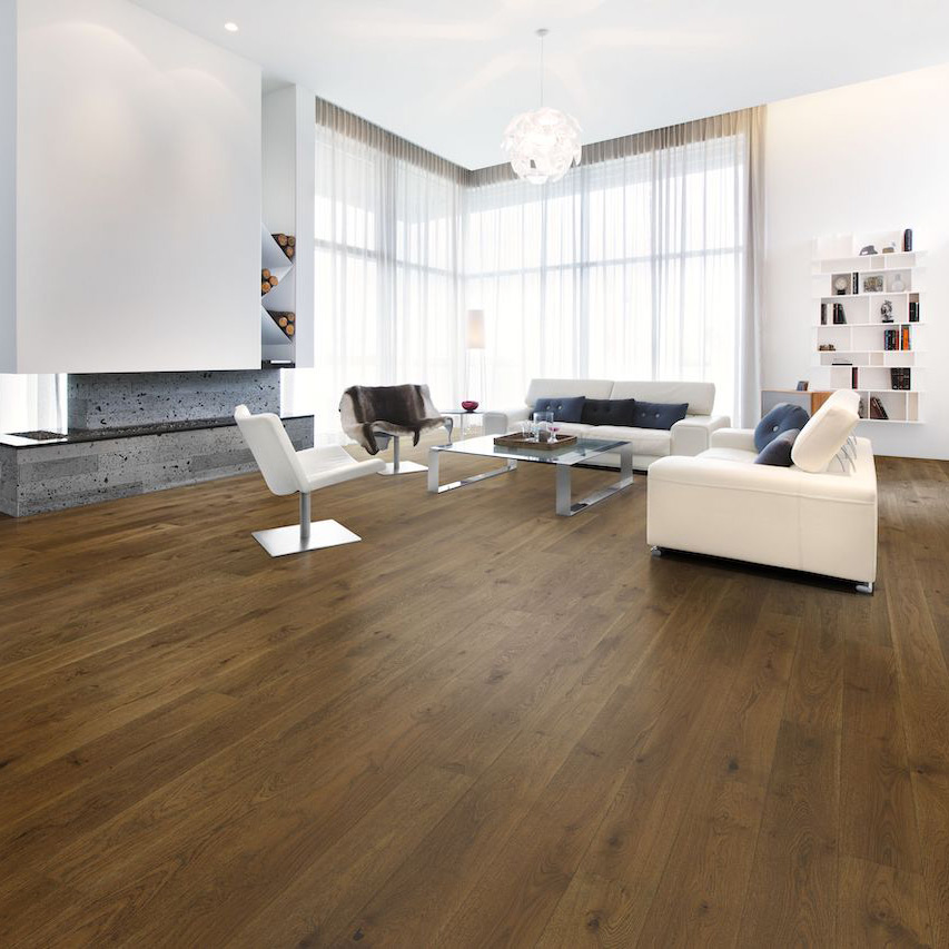 Однополосная дубовая доска в насыщенных темно-коричневых тонах. Поверхность обработана щеткой и покрыта матовым лаком. Декор с сучками. Допускаются естественные вариации цвета древесины. Для продукции характерны крупные плотные и черные зашпатлеванные сучки и трещины. Диаметр шпатлевок максимум 35 мм, а средняя ширина трещин не больше 10 мм. В шпатлевке встречаются неровности и отверстия.