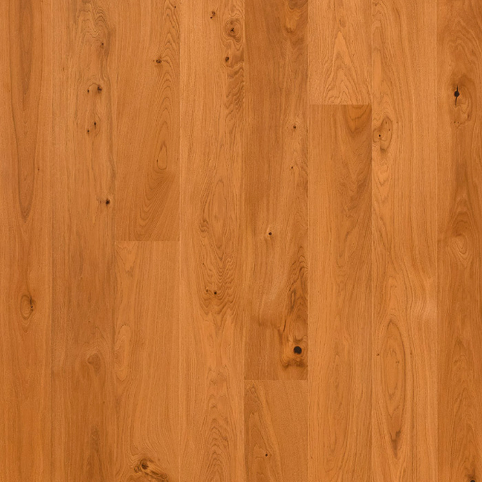 Однополосная доска из дуба сортировки Кантри, покрыта коричневым матовым лаком. Допускается: разнотон; редкая заболонь; сердцевинные лучи; темные полосы; зашпатлеванные сучки.