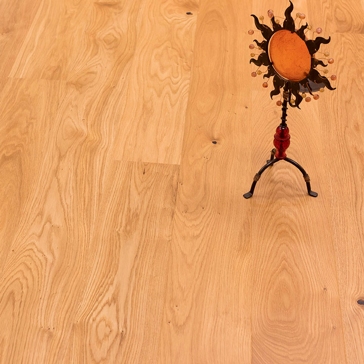 Однополосная доска из дуба сортировки Кантри, покрыта матовым лаком. Допускается: разнотон; редкая заболонь; сердцевинные лучи; темные полосы; зашпатлеванные сучки.
