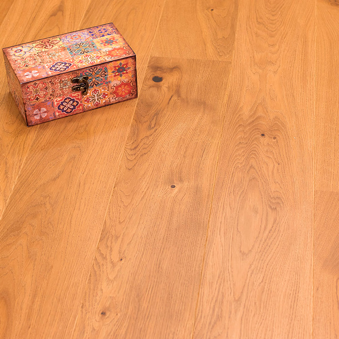 Однополосная доска из дуба сортировки Кантри, покрыта коричневым матовым лаком. Допускается: разнотон; редкая заболонь; сердцевинные лучи; темные полосы; зашпатлеванные сучки.