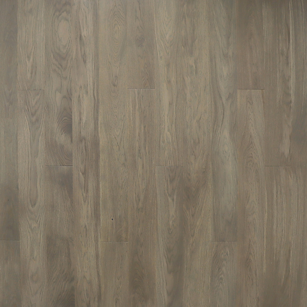 Доска из дуба, обработанная щеткой и покрытая матовым лаком. Спокойная гамма серых оттенков позволит привнести