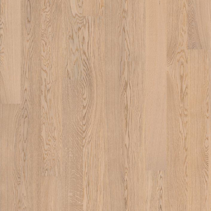Отбеленная дубовая доска под лаком с фасками по длинной стороне. Светлый тон морилки визуально расширит пространство. Для данного декора используется отборное сырье. Допускаются умеренные вариации цвета древесины, сердцевинные лучи, живые сучки и маленькие, черные сучки (Ø до 7 мм), а также редкие групповые булавочные сучки и червоточины (Ø до 2 мм).