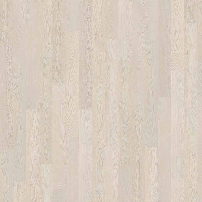 Однополосная дубовая доска с микро-фасками. Теплые тона текстуры древесины просвечиваются через более холодный белый матовый лак. Декор с большими вариациями цвета и умеренное количество сучков. Допускается: заболонь; сердцевинные лучи; живые сучки; зашпатлеванные черные сучки диаметром до 12 мм; зашпатлеванные трещины (средняя ширина не больше 7 мм); групповые булавочные сучки; червоточины (Ø до 2 мм).