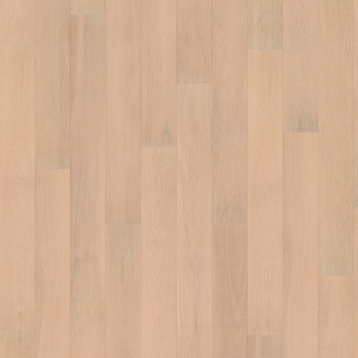 Однополосная дубовая доска чистой сортировки в светлых тонах. Поверхность обработана щеткой и покрыта матовым лаком. Полупрозрачный белый с умеренным контрастом, пропускает сквозь себя сияние теплых древесных оттенков. Для данного декора используется отборное сырье. Допускаются умеренные вариации цвета древесины, сердцевинные лучи, живые сучки и маленькие, черные сучки (Ø до 7 мм), а также редкие групповые булавочные сучки и червоточины (Ø до 2 мм).