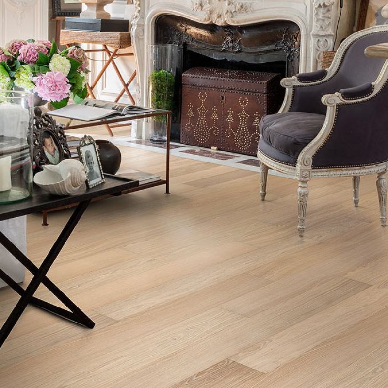 Светлые оттенки этой белой однополосной доски из Столичной коллекции гармонируют с однородными цветовыми варияциями досок. Используется дубовая древесина только самого высокого качества, аккуратная брашировка каждой доски показывает особенности волокон и подчеркивает натуральную текстуру древесины. Светопоглощающее ультраматовое лаковое покрытие создает впечатление свежеспиленной доски, эффективно устраняя блеск и защищая пол от ежедневного износа. Четырехсторонняя микро-фаска по краям усиливает классический вид и ощущение цельной доски.Ровный цвет с небольшими изменениями. Допускаются малочисленные сучки небольшого размера.