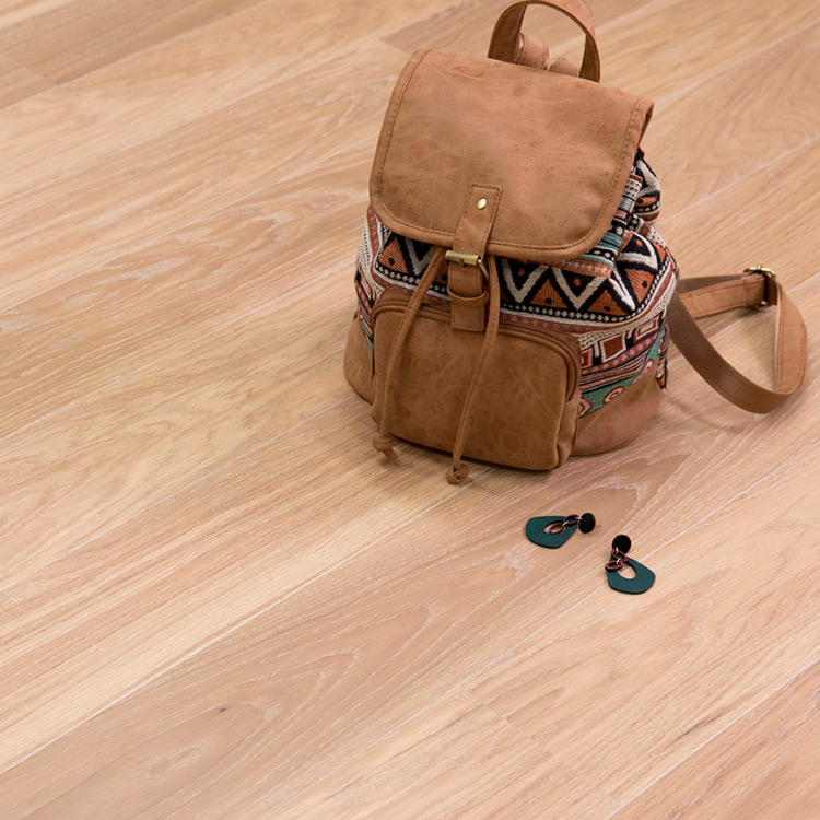 Легко брашированная однополосная доска из отборного дуба под белым маслом. Допускается: разнотон; заболонь; сердцевинные лучи; редкие сросшиеся сучки; групповые булавочные сучки.