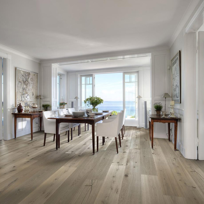 Серая тонировка этого однополосного паркета из Королевской коллекции позволяет особенностям древесины слегка проступать на поверхности пола, создавая сбалансированный внешний вид. Каждая доска бережно обработана щеткой, чтобы подчеркнуть характер и текстуру древесины. В сочетании с четырехсторонней фаской это придает паркету классический вид и приятные тактильные ощущения. ●Допускаются всевозможные вариации цвета - от