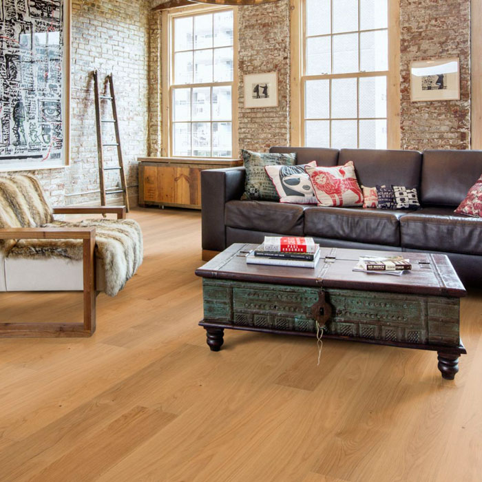 Однополосный дубовый декор из коллекции Люкс успокаивает своими тёплыми, легкими акварельными полутонами. Четырехсторонняя микро-фаска создаёт впечатление традиционного дощатого пола. Каждая доска тщательно обработана щёткой до совершенства, подчёркивая естественную красоту древесины. Покрытие ультраматовым лаком подчёркивает естественные узоры древесины, создавая впечатление необработанного, недавно распиленного дерева. Кроме того, такое покрытие эффективно устраняет блики и защищает пол от ежедневного износа.Допускаются все возможные в природе вариации цвета древесины – от светлого до тёмно-коричневого. Может встречаться заболонь, зашпатлёванные сучки и трещины могут различаться по размеру и количеству.