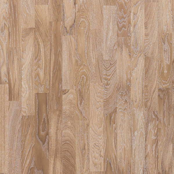 Легко брашированная трехполосная доска из дуба под белым маслом.