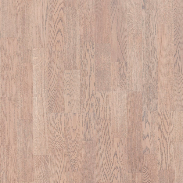Классическая трехполосная доска из дуба под белым матовым лаком. Допускается: легкий разнотон; редкая заболонь; темные полосы; сердцевинные лучи; редкие сросшиеся сучки; групповые булавочные сучки.]]