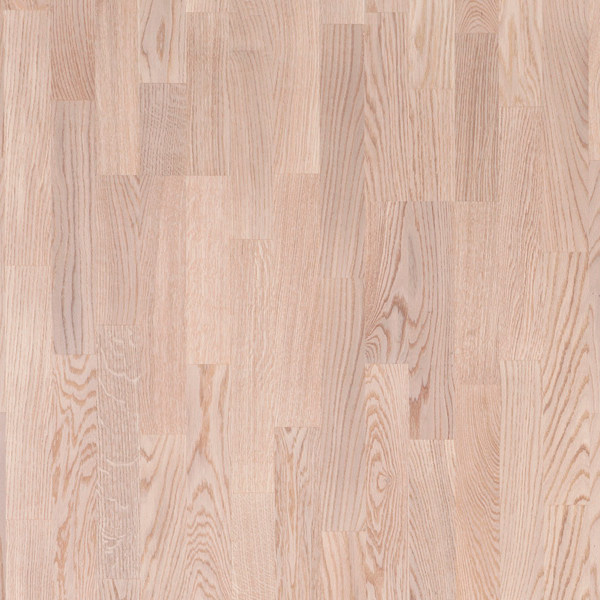 Классическая трехполосная доска из отборного дуба под белым матовым лаком. Допускается: легкий разнотон; редкая заболонь; темные полосы; сердцевинные лучи; редкие сросшиеся сучки; групповые булавочные сучки.]]