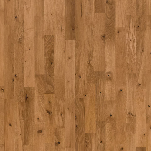 Трехполосная доска из дуба в стиле Кантри, покрыта светло-коричневым маслом. Допускается: редкая заболонь; сердцевинные лучи; темные полосы; сросшие и зашпатлеванные сучки.]]