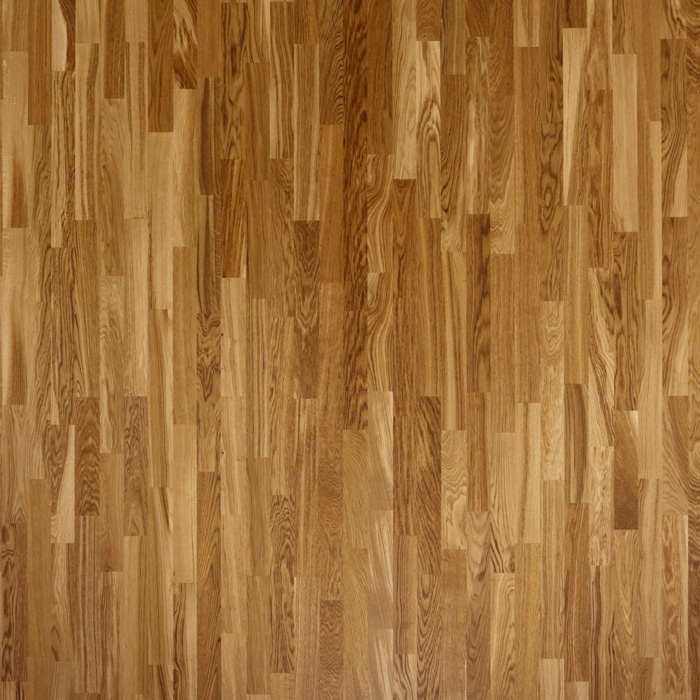 Трехполосная доска из дуба под матовым лаком. Для данного декора используются более темные ламели с ярко выраженной текстурой.