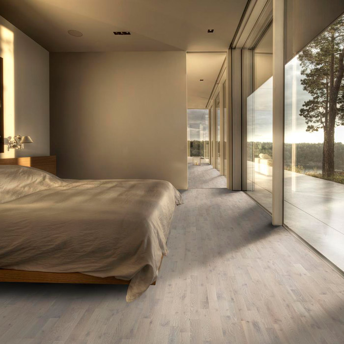 Белое покрытие пудрового оттенка этой трехполосной дубовой доски из коллекции Гармония открывает теплые оттенки древесины. Матовое лаковое покрытие устраняет блеск и защищает пол от ежедневного износа. Совершенная брашировка каждой доски выделяет особенности волокон и подчеркивает натуральную текстуру древесины. Допускаются естественные вариации цвета от светло-коричневого до темно-коричневого, а также заболонь. Для декора характерны плотные и черные сучки. Сучки могут быть различных размеров и в разном количестве.