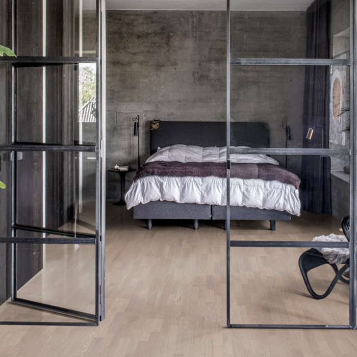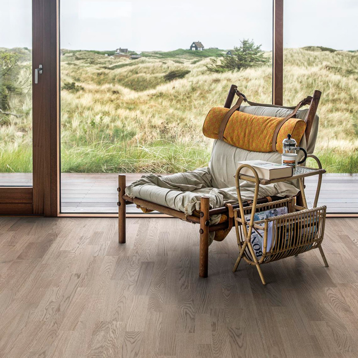 3-полосная дубовая доска из коллекции Люмен характеризуется каменно-земельным цветом, который идеально подчёркивает покрытие ультраматовым лаком. Каждая доска тщательно обработана щёткой до совершенства, чтобы усилить естественный характер древесины. Покрытие ультраматовым лаком подчёркивает естественные узоры древесины, создавая впечатление необработанного ,недавно распиленного дерева. Кроме того, такое покрытие эффективно устраняет блики и защищает пол от ежедневного износа.
