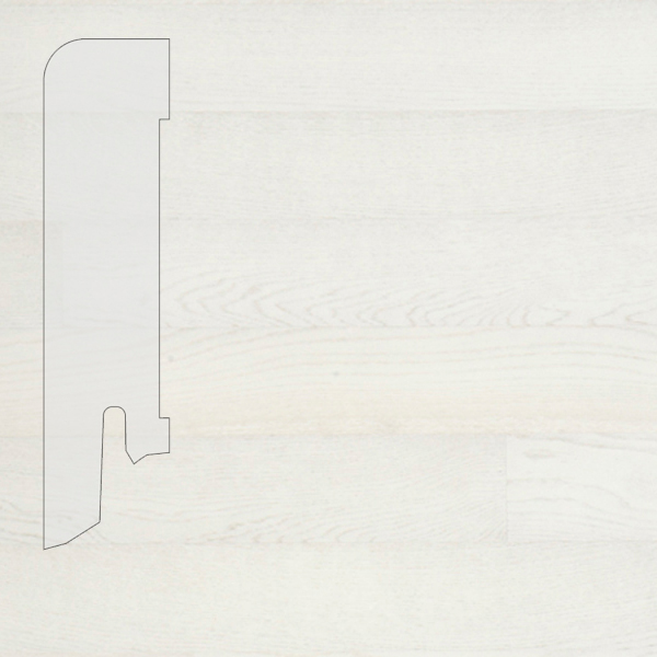 На основание плинтуса приклеивается натуральный шпон древесины ясень толщиной 0,6 мм. Сверху плинтус ясень 60х16 покрывается 3 слоями прочного бесцветного полуматового лака с УФ-отверждением. Лак надежно защищает плинтус от влаги и механических повреждений. Плинтуса изготавливаются в Италии и соответствуют всем Европейским экологическим нормам.