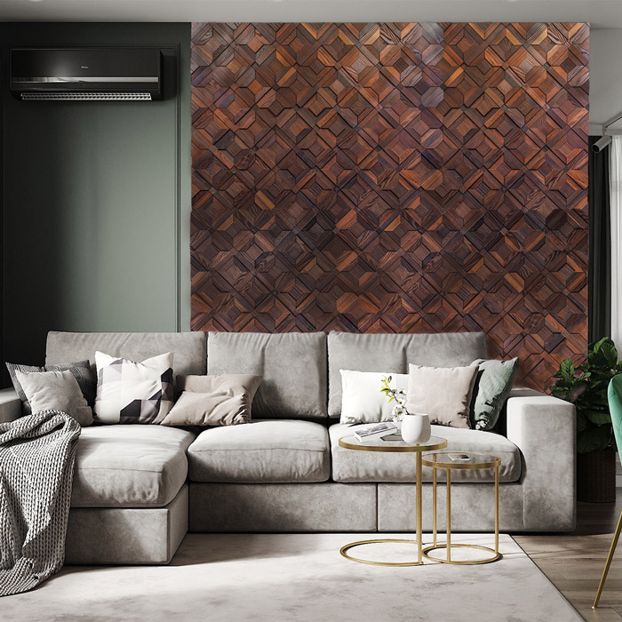 Деревянная мозаика Tarsi применима в дизайнерском оформлении квартир, ресторанов, баров, отелей, офисных и административных помещений, в декорировании фасадов мебели, зеркал, арочных зон, кашпо и прочее. С помощью деревянных панелей Tarsi возможно подчеркнуть одну из стен или ее отдельную часть, например, изголовье кровати, ТВ – зону. Горизонтально расположенной узор визуально вытянет и расширит помещение, а вертикальный – сделает выше.
