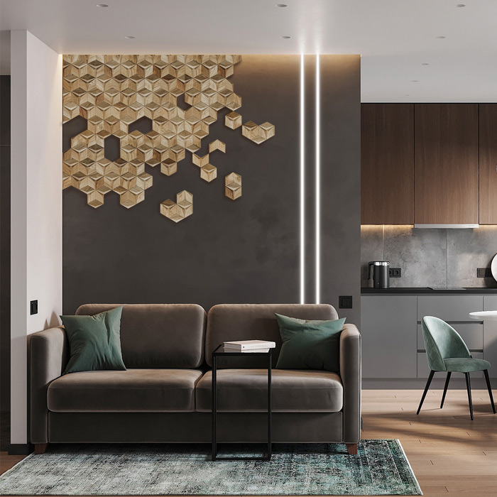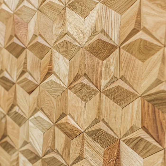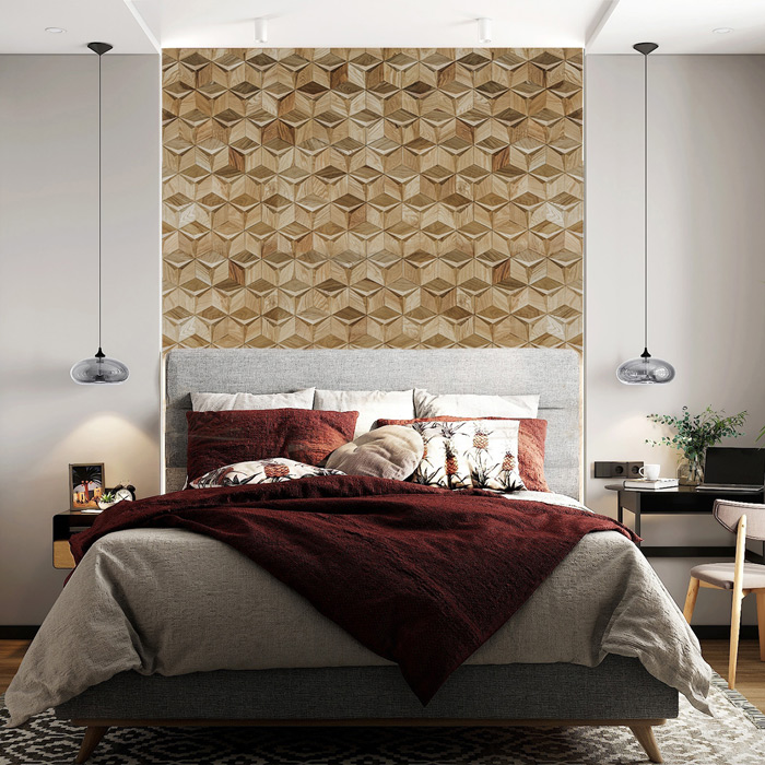 Деревянная мозаика Tarsi применима в дизайнерском оформлении квартир, ресторанов, баров, отелей, офисных и административных помещений, в декорировании фасадов мебели, зеркал, арочных зон, кашпо и прочее. С помощью деревянных панелей Tarsi возможно подчеркнуть одну из стен или ее отдельную часть, например, изголовье кровати, ТВ – зону. Горизонтально расположенной узор визуально вытянет и расширит помещение, а вертикальный – сделает выше.