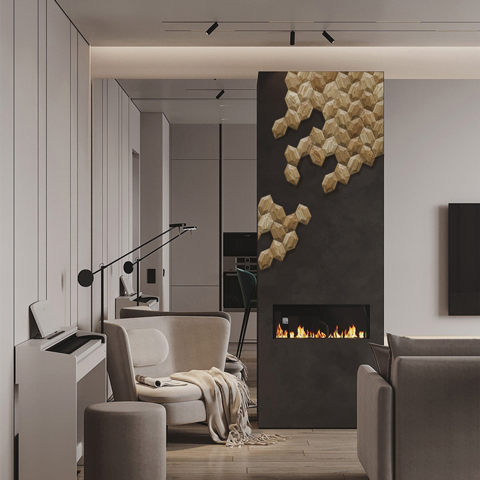 Деревянная мозаика Tarsi применима в дизайнерском оформлении квартир, ресторанов, баров, отелей, офисных и административных помещений, в декорировании фасадов мебели, зеркал, арочных зон, кашпо и прочее. С помощью деревянных панелей Tarsi возможно подчеркнуть одну из стен или ее отдельную часть, например, изголовье кровати, ТВ – зону. Горизонтально расположенной узор визуально вытянет и расширит помещение, а вертикальный – сделает выше.