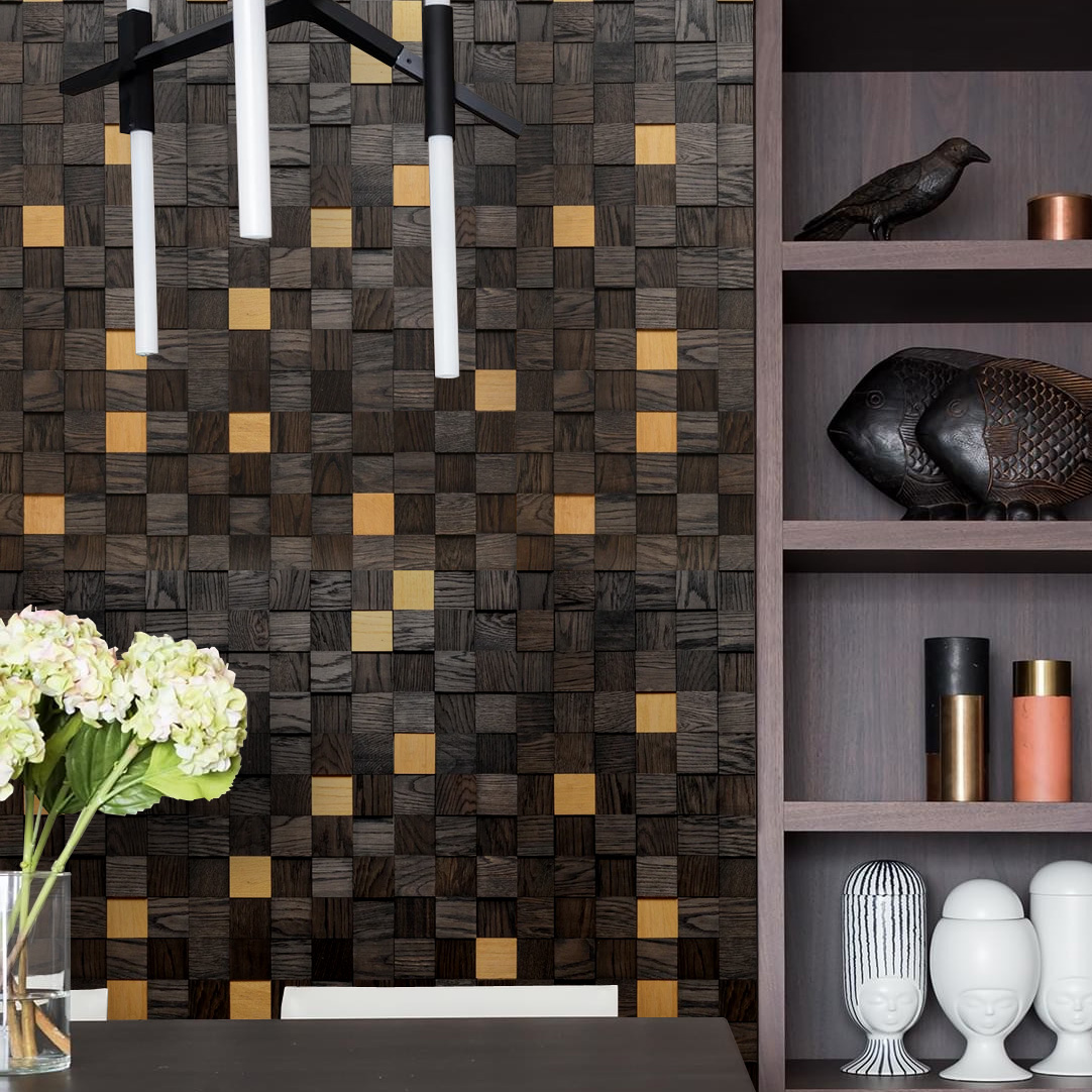 Деревянная мозаика Tarsi применима в дизайнерском оформлении квартир, ресторанов, баров, отелей, офисных и административных помещений, в декорировании фасадов мебели, зеркал, арочных зон, кашпо и прочее. С помощью деревянных панелей Tarsi возможно подчеркнуть одну из стен или ее отдельную часть, например, изголовье кровати, ТВ – зону. Горизонтально расположенной узор визуально вытянет и расширит помещение, а вертикальный – сделает выше.